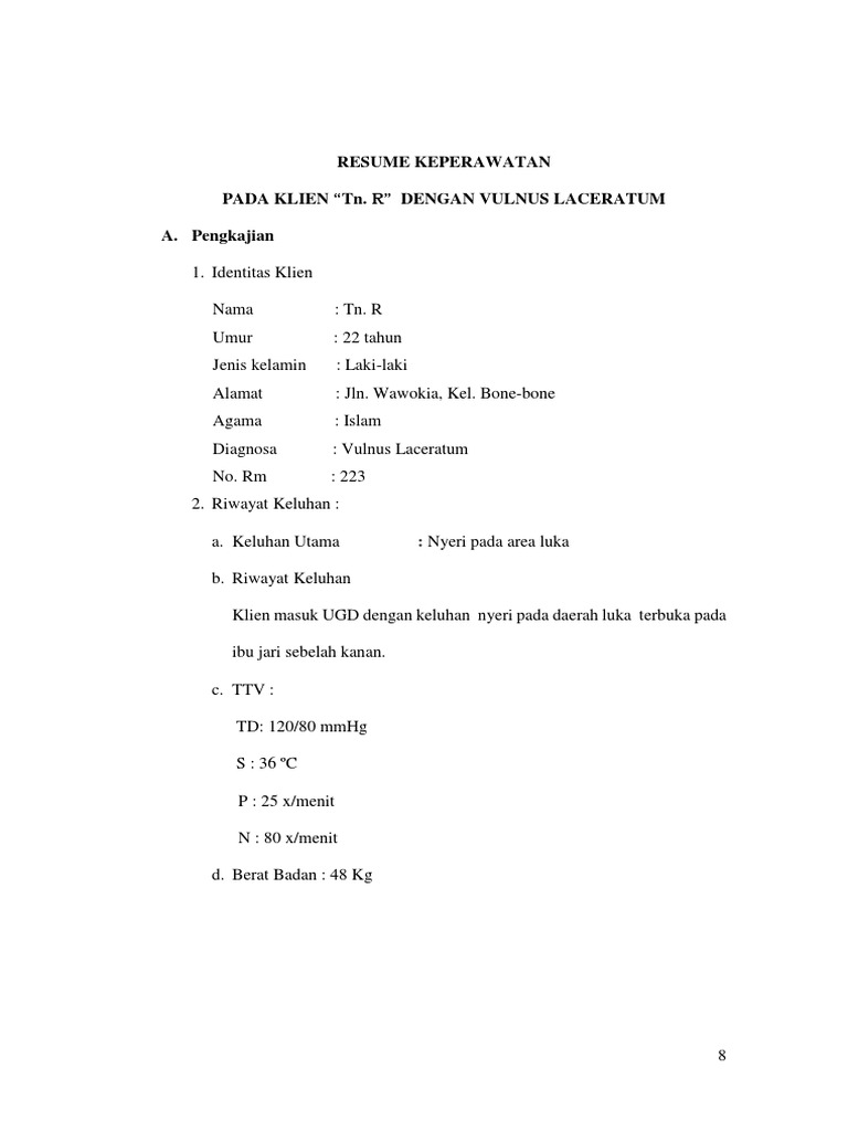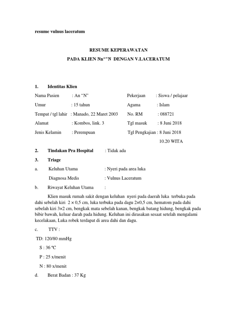 22 tahun Jenis kelamin. Mansjoer 2000 menyatakan Vulnus Laseratum merupakan luka terbuka yang terdiri dari akibat. Dalam menuliskan resume lamaran kerja yang baik dan benar setidaknya memuat beberapa syarat atau hal di bawah ini di antaranya.